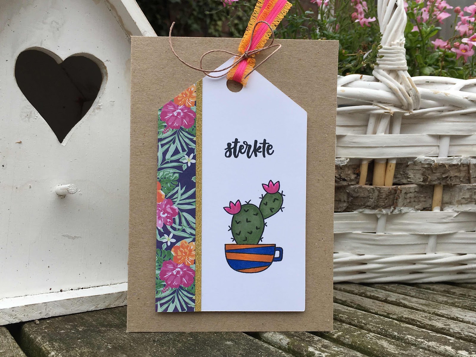 Cactusses are a bit prickly mostly. Thats why a chose this image with this sentiment wich says "Sterkte", wich is something like "stay strong", in english. I really Love tags on cards. Big ones, and small ones. I cut them with my Cricut in every size I like.